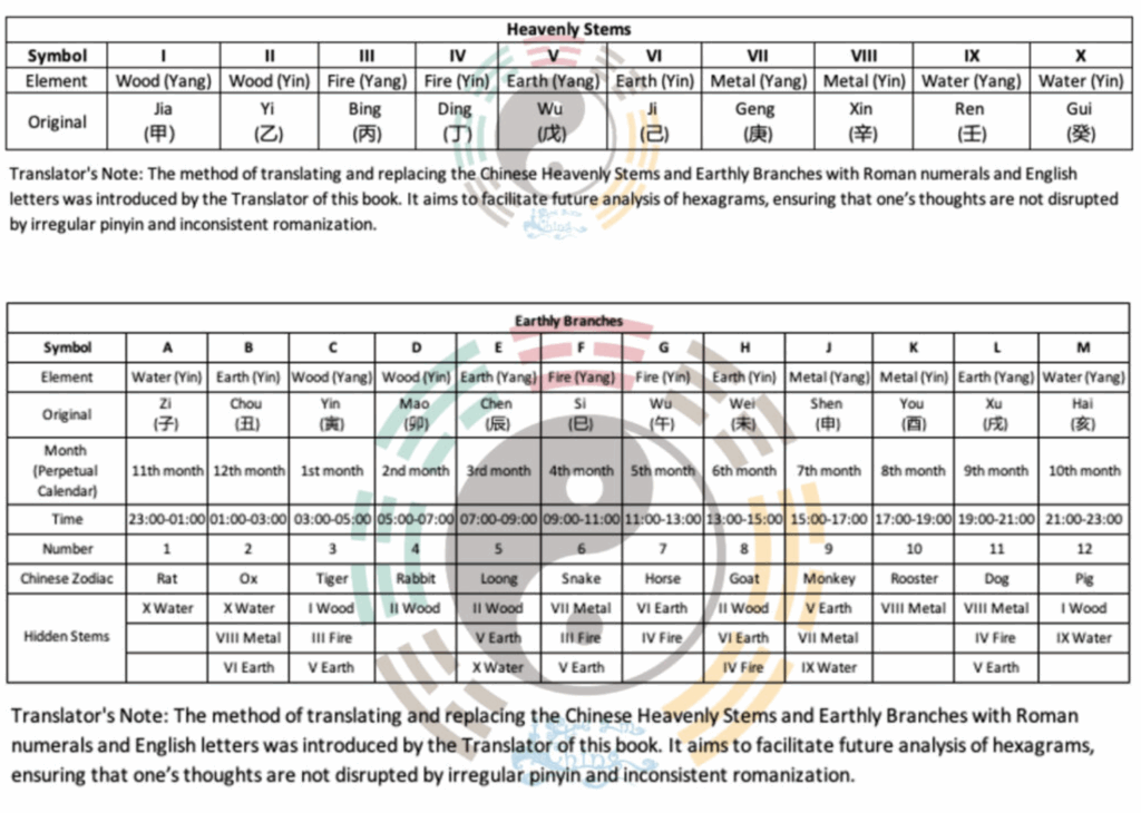 To lower the learning curve for Six Lines Divination, I designed a simple notation and translation system. I convert Heavenly Stems and Earthly Branches into Roman numerals and Latin letters. The sequence remains intact, and learners can memorize it faster (you probably do not need to memorize it, since the English alphabet is basic knowledge for anyone who speaks English).